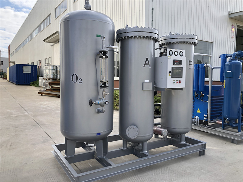 變壓吸附制氧裝置以潔凈的壓縮空氣為原料,采用高品質(zhì)的沸石分子篩作為吸附劑,在一定的壓力下,從空氣中制取氧氣。經(jīng)過(guò)純化干燥的壓縮空氣,在吸附器中進(jìn)行加壓吸附、減壓脫附。由于空氣動(dòng)力學(xué)效應(yīng),氮在沸石分子篩微孔中擴(kuò)散速率遠(yuǎn)大于氧,氮被沸石分子篩優(yōu)先吸附,氧在氣相中被富集起來(lái),形成成品氧氣。然后經(jīng)減壓至常壓,吸附劑脫附所吸附的氮?dú)獾入s質(zhì),實(shí)現(xiàn)再生。一般在系統(tǒng)中設(shè)置兩個(gè)吸附塔,一塔吸附產(chǎn)氧,另一塔脫附再生,通過(guò)PLC程序控制器控制氣動(dòng)閥的啟閉,使兩塔交替循環(huán),從而取得純度較高的氧氣(93%±3%)。